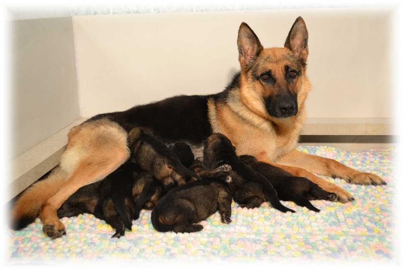 HEMI and YEVHEN have had their litter. We have 9 big healthy pups born on July 19th, 2013. Hemi is doing fantastic as a mom and is taking excellent care of her new pack. There are 5 females and 4 males. We expect very strong, steady nerves in this pups with excellent trainability for sport or companionship.